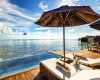 With the breathtaking, artistically sunken glass floor the Deluxe Water Villa offers an elegant interior and direct access to the turquoise-coloured lagoon. Unique features: 7 sqm2 private Jacuzzi plunge pool | short swim away from the house reef