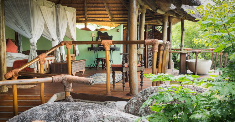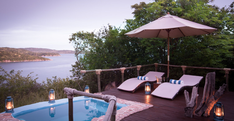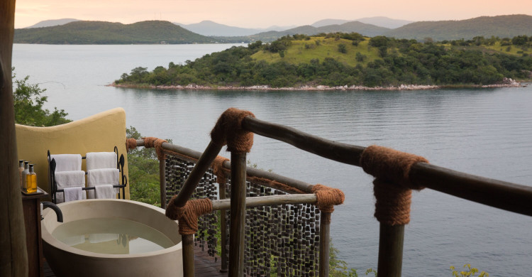 Each open air bathroom enjoys a water fall shower coming straight out of the rocks, a large stone bath open to the stars and big enough for two people. Your large king sized bed faces the most maginificent view over lake Tanganyika. Tourist free with just a few fishermen on the lake in the distance, Lupita island is a peaceful oasis of peace and tranquility.