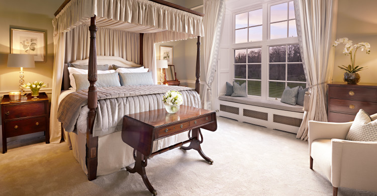 At the very heart of this magical Irish castle, above its magnificent, looping arched entranceway, lies a master bedroom named in honour of its original inhabitants. What awaits you at through the ornate Gothic hallway and up the glorious grand staircase, is a striking four-poster double bed beneath an endlessly high ceiling. To the side, is a big bay window with panoramic views out over the castle’s sprawling estate. Fully refurbished with some of the most beautiful pieces from that time period, this lovely room is rightly known as the heart of Luttrellstown Castle.