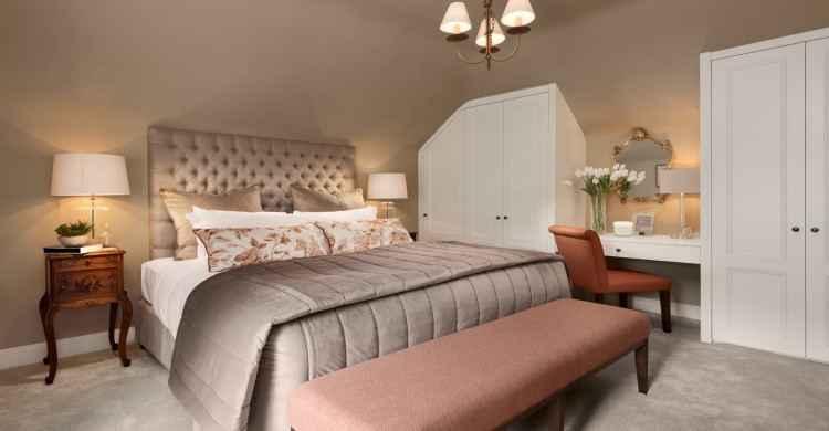 The Luttrellstown estate only exists because Sir Geoffrey Luttrell purchased the land while accompanying King John to Ireland in 1210. To recognise the debt we owe to him, we reinstated one of the largest and most beautiful bedrooms in the magnificent castle that now stands on his demesne. This stunning first floor suite is made up of three separate rooms. In the large bedroom, there’s a king-sized bed draped in luxurious 100% cotton monogrammed linen. In the en-suite, there are dual sinks, a spacious walk-in shower and loads of luxurious Molton Brown bathroom beauty accessories. Bathed in natural light and surrounded by warm tones and rich hues, the effortlessly comfortable sitting room includes large original windows, a grand bookcase, a magnificent fireplace, a fold-out sofa and multiple palaces to sit back and enjoy the whole experience.