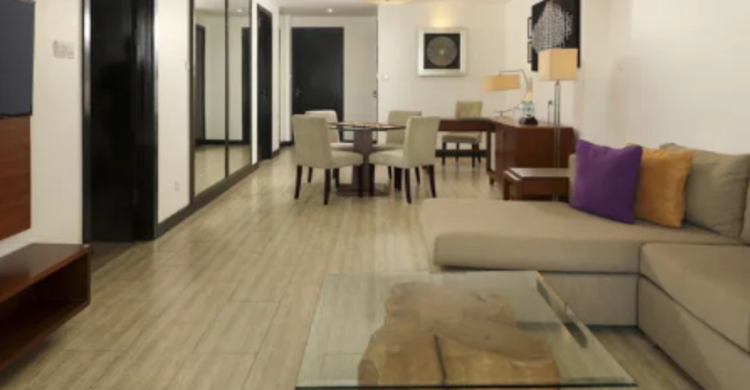 Measuring 85 square metres, our One-Bedroom Suites are luxurious, comfortable and spacious. Each bedroom has a King-size bed and a living room fitted with a comfortable work desk, a large 42-inch flat screen-television and wireless broadband Internet access.