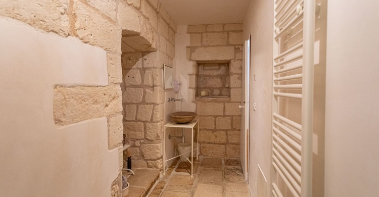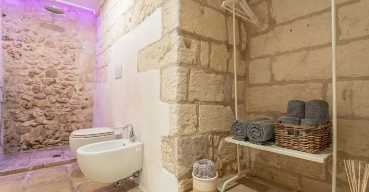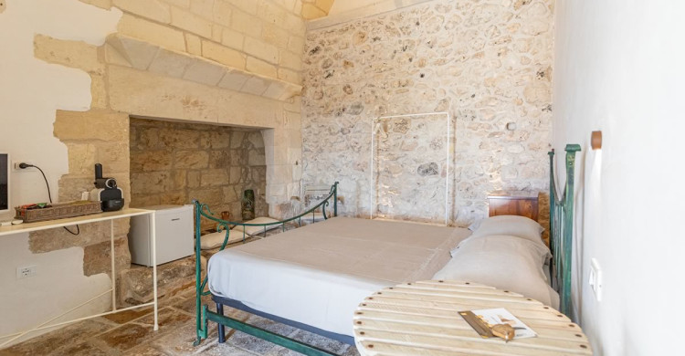 Double bedroom with antique fireplace and skylight, bathroom in stone with emotional shower with chromotherapy system.