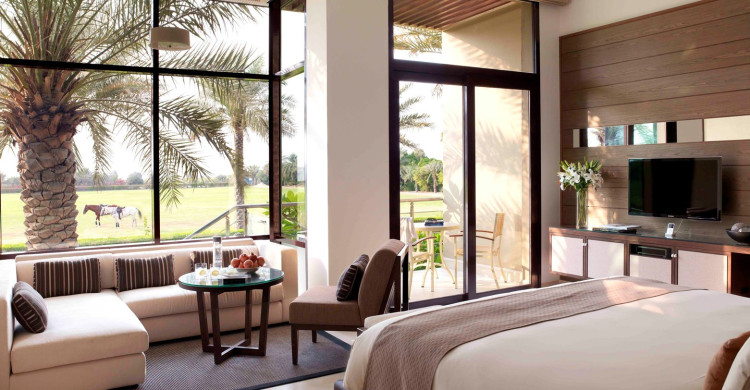 Contemporary indoor living extends to an outdoor oasis with open-plan ground-level suites overlooking the main championship polo field and landscaped gardens. Private balconies look out at polo matches during the day with easy access to the main retreat’s infinity pool. Indoors, Emperor sized beds, oversized tubs and rain showers create the ultimate relaxation along with the latest entertainment technology.