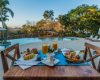 We love to wine and dine our guests at Mikado Natural Lodge, and what could be more perfect than a private dinner around the pool with beautiful flower decorations? Our breakfast at the room with a view is also sure to please, as is our dining room which can accommodate up to 35 people.
