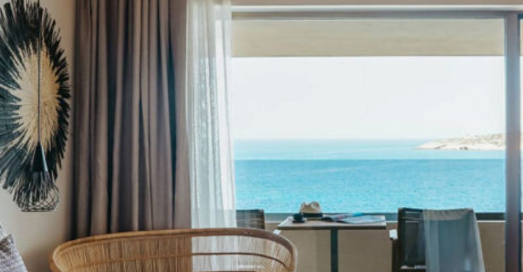 The sea view rooms feature one bedroom with a double bed, bathroom with walk-in shower and come complete with a large balcony offering panoramic views of the azure sea.