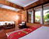 Size: 57 square meters View: Partial sea views Description: A pool-access studio with an extra large king-sized bed, sitting area and office nook. A spacious bathroom has a separate shower and bathtub. Entry is though an ample terrace which opens directly on to the upper swimming pool. Location: Pool access suite located in the same building of the Beach Wing Suites