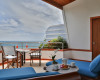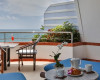 Size: 70 square meters View: Panoramic sea view Description: Suites are spacious and contemporary with an open plan sitting room and an extra large king-sized bed. Suites have connecting doors, ideal for families. All rooms have a very large balcony with ceiling fan and two lounge chairs enjoying sea views. A large bathroom has a Jacuzzi bathtub and separate shower Location: Adjacent to reception, in the Royal Wing