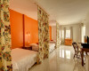 Charming 35 sqm room with 1 queen bed and 1 day bed for lounging or to accommodate a third person. Furnished with small living room area, flat screen cable TV, hair dryer, in-room safe and writing desk. Pool and sea views.