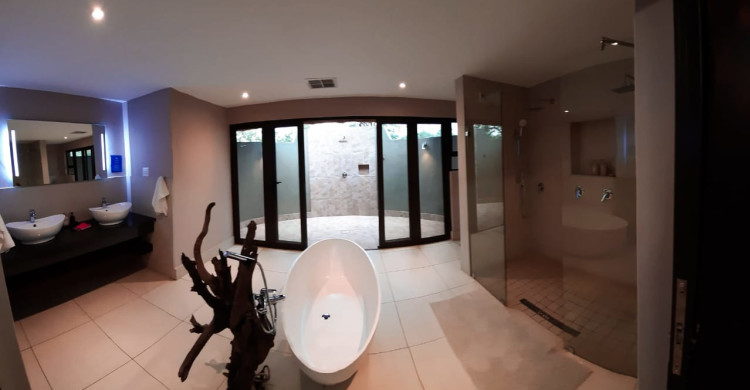 Indulge in a long, relaxing soak in the large oval bath, or enjoy the refreshing walk in indoor shower. For something truly special, step outside and embrace the wild with your own open air outdoor shower an unforgettable experience under the African sky.