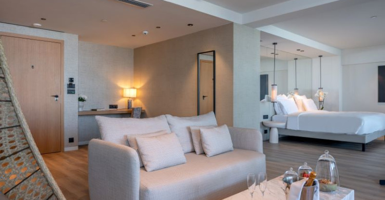 NIKO Seaside Resort MGallery’s ample Amazing Escape Suite with Grand Pool is a true holiday-maker’s paradise. Relax in good company on the corner balcony as you enjoy exceptional vistas out to Mirabello Bay or create your very own relaxing oasis by the suite’s private pool.