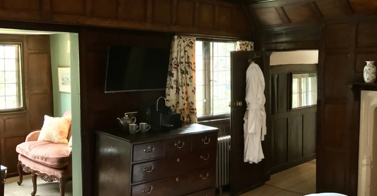 Located in the oldest part of the house, this oak-panelled suite is filled with Tudor charm and has its own separate seating area....ideal for romantic break or celebratory getaway.