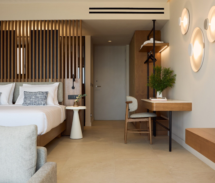 ÓROS offers a refined collection of accommodations designed for couples, families and groups seeking space, privacy and effortless luxury. Earthy tones, bespoke furnishings and floor-to-ceiling windows create serene interiors that flow naturally into the surrounding landscape. Accommodation options include: