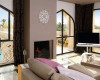 The interior is flooded with daylight through floor to ceiling doors and moorish arched windows. The design exudes a contemporary calm and a pure balanced energy, with fireplaces in each room following the feng shui principles. Each Lounge Suite includes a separate dressing room and a stylish bathroom with a double shower and centred soaking tub.