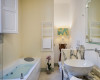 The bathroom is large, bright and comfortable. It has a Jacuzzi bathtub and a spacious shower.