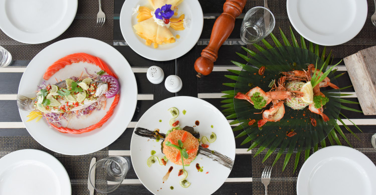 Start your day with a stunning view over Maenam Bay and the neighboring Island Koh Phangnan while having breakfast. Relax during the day while staying at our beachfront or at one of our two fresh water pools or spoil yourself and your partner with one of our massages and treatments at our LA-MOON Spa. Have a romantic beach walk during sunset. Afterwards you can enjoy a cocktail at our beach bar before you finish the day with a romantic candlelight dinner in a tropical night at our Terrace Restaurant on the beachfront.
