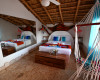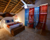 " Very romantic, rustic and characteristic bedroom with authentic natural coral stone flooring (with natural concretions, "slices" of coral reef), very heavy bed, immovable, made of concrete, and the remaining furniture made of real coconut palm wood, with bathroom private, always in coral stone and finished with large natural local shells. It is embellished with wooden animals carved by local artisans."