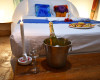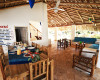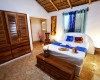 " Very romantic, rustic and characteristic bedroom with authentic natural coral stone flooring (with natural concretions, "slices" of coral reef), very heavy bed, immovable, made of concrete, the remaining furniture made in coconut palm wood, with bathroom private, always in coral stone and finished with large natural local shells and private porch overlooking an incredible pool. It is embellished with wooden animals carved by local artisans."