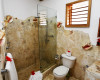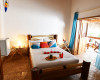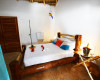 " Very romantic, rustic and characteristic bedroom with authentic natural coral stone flooring (with natural concretions, "slices" of coral reef), very heavy bed, immovable, made of real coconut palm wood, as well as the remaining furniture, with bathroom private, always in coral stone and finished with large natural local shells. It is possible to add a adicional bed and is embellished with wooden animals carved by local artisans."
