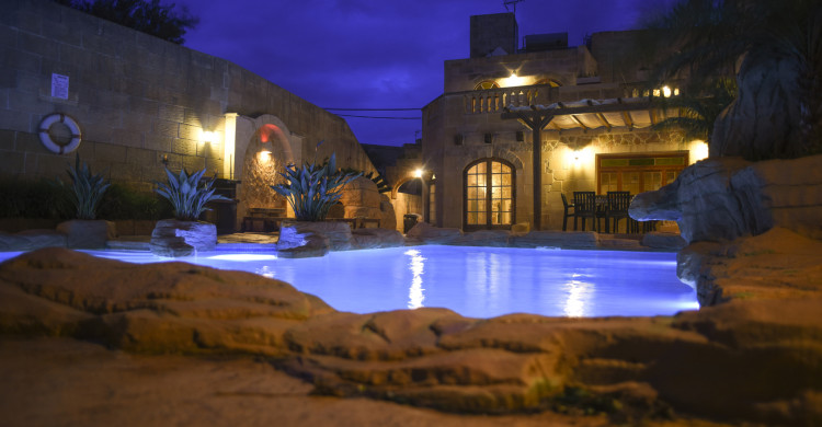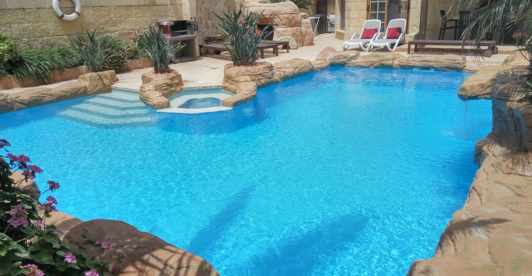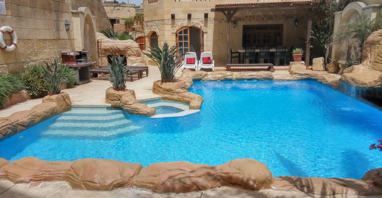 Penmon Farmhouse is a charming 300 year old farmhouse located in the tranquil village of Gharb on the west side of the island of Gozo. The house was renovated with family in mind serving as a getaway from the hectic city life for its current owners. Offering 4 bedrooms, the farmhouse sleeps 11, and features a unique designed lagoon type pool and landscaped garden including Al Fresco Dining & BBQ area.