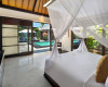 Our ultra-luxury Five-Bedroom Presidential Pool Villas are set on an impressive 900-940 square metres of land depending on location, making them ideal for families or friends travelling together. All villas feature large private swimming pools with teak wooden decking and reclining loungers and are surrounded by beautiful tropical gardens and a sizeable poolside Bale. The living and dining areas feature fully equipped gourmet kitchens with full-size refrigerators. These Villas accommodate ten adults and four children and have air-conditioned bedrooms complete with ceiling fans. All have ensuite master bathrooms, marble floors, spacious wardrobes and study desks. Bedrooms also feature flat-screen televisions with integrated DVD system and satellite channels, IDD telephones, internet access and digital safety deposit boxes.