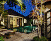 Three-Bedroom Royal Pool Villa at Peppers Seminyak is set on 450 square metres of land and feature their private swimming pools with teak wooden decking, reclining loungers and are surrounded by beautiful tropical gardens and a large poolside bale. The living and dining areas feature fully equipped gourmet kitchens with full-size refrigerators. These Villas accommodate six adults and three children and have air-conditioned bedrooms complete with ceiling fans, flat-screen televisions with integrated DVD system and satellite channels, IDD telephones, internet access and digital safety deposit boxes. There is a bathtub ensuite to the master bedroom, and showers for the other two bedrooms and all bedrooms feature marble floors, spacious wardrobes and study desks.