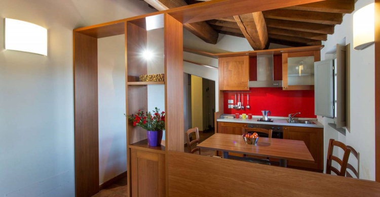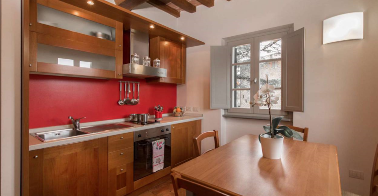 The Country House is an old rural hamlet that has now been restored, the Country House is home to fifteen welcoming flats with two to three rooms surrounded by a large garden that in the warmer months is furnished with umbrellas, tables, and chairs for enjoying the view in complete comfort. The flats, arranged on the ground and first floors, can be occupied by up to six people. They are equipped with a living room with sofa bed, air conditioner, TV, Wi-Fi Internet, and a kitchenette with a fridge, electric cooker, dishes and cutlery. The guests have use of towels, bed linens, and kitchen linens.