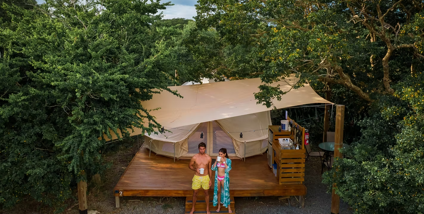 Nestled in five acres of lush countryside on Puerto Rico’s southwest coast, Pitahaya Glamping Retreat is the island’s first eco-certified glampsite. Here, modern comfort meets the magic of the outdoors: stylish tents with private bathrooms and electricity blend seamlessly with starry night skies, bird song, and tropical landscapes. Just 20 minutes from some of Puerto Rico’s best beaches, Pitahaya offers a one-of-a-kind escape where guests can slow down, reconnect, and experience nature without giving up life’s luxuries.