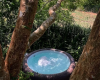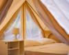 Two tents also include a private jacuzzi, perfect for romantic escapes. Guests enjoy full access to the campfire area, shared swimming pool, and outdoor lounge spaces — creating the perfect balance between a cozy hideaway and a social glamping experience.
