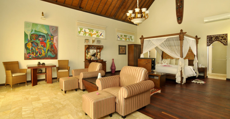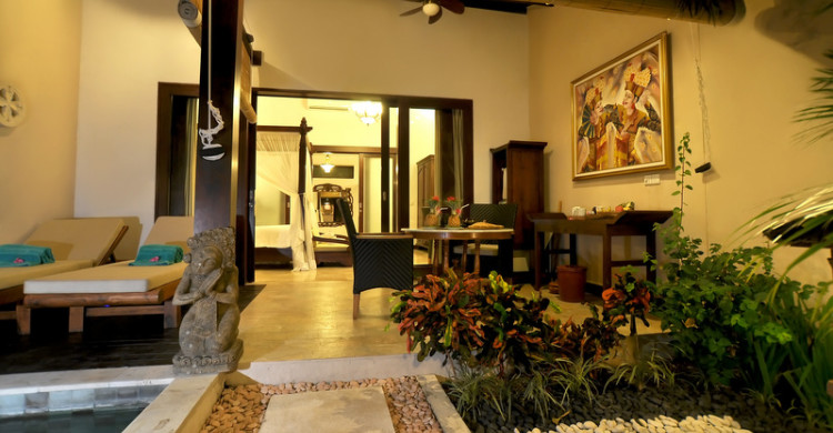 There are a multitude of accommodation choices within Puri Mas Boutique Resorts & Spa, so every couple will find their ideal space. Perhaps that will be a private beach resort villa, stately and luxurious within walled gardens and with private pools. Or maybe a quirky garden room, more compact but so charmingly pretty with their terraces and cottagey feel. Outdoor rainforest showers, canopies of tropical flowers, intricately carved Indonesian furniture, beds draped with fine fabrics...all this and more is waiting for you. Rates are variable dependant on season so please request availability to get the best quote for your dates and stay.