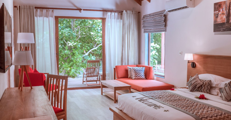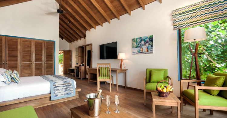 Our collection of freestanding beach-front villas has the most luxurious interior size. Their truly private setting will encourage you to live the 'Me' time amidst natural surroundings, that you may have always yearned for with a spacious sitting area, rain shower and bathtub, terrace with deck chairs and sun loungers (with mattress) on the beach.