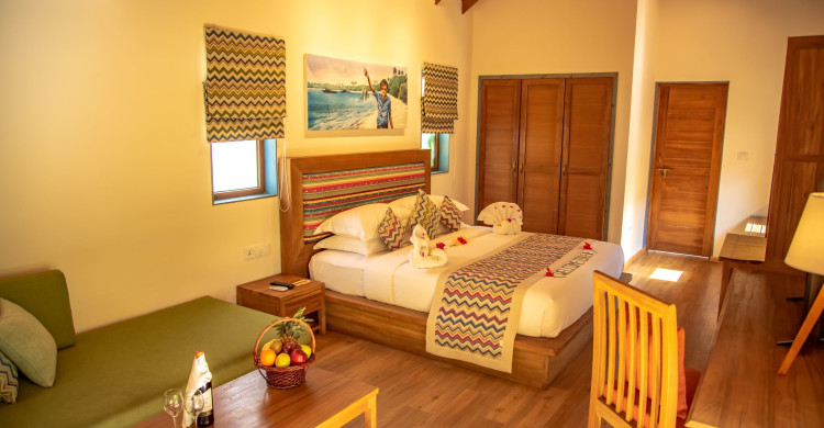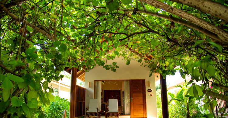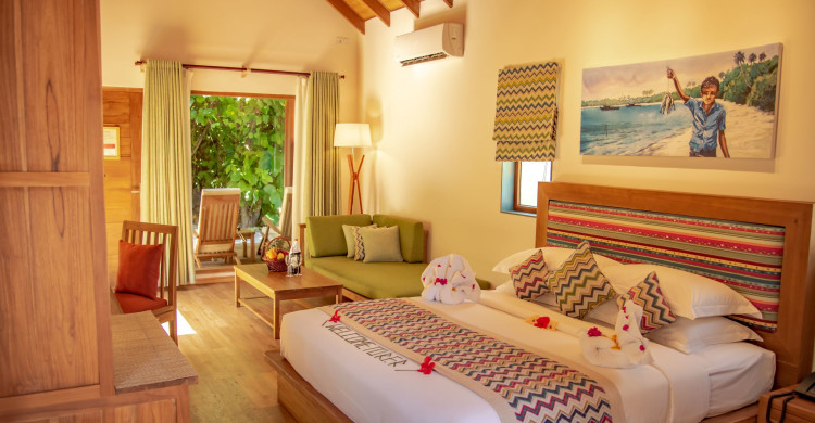 Set amidst the lush green vegetation, are the Reethi Faru Garden Villas. Designed to complement the natural beauty of the island, each villa boasts spectacular views of local flora and offers the tranquility of your home with a sitting area, rain shower, terrace with deck-chairs and sun loungers (with mattress) on the beach nearby.