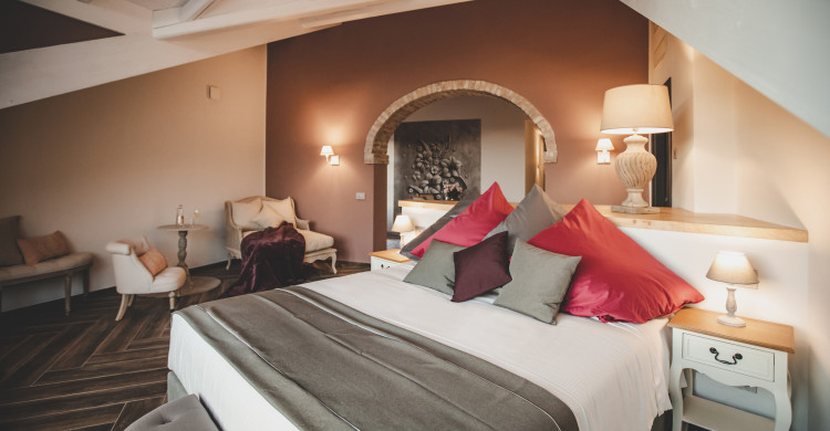 With over 175m2 of exclusive space, our Almaranto Suite is our largest and boasts a spacious bedroom with Grand King double bed, separate dining area, a comfortable lounge with oversized sofa and armchair, and 100m2 private terrace with outdoor jacuzzi (seasonal) outdoor seating, sun loungers and bespoke planting.