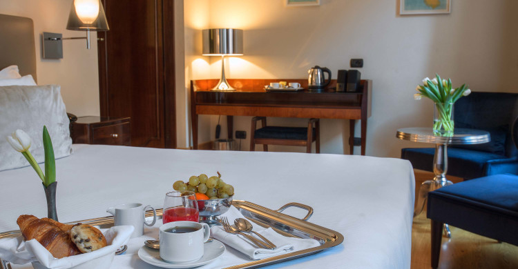 Sweet Italian breakfast plus traditional Italian savoury items Fresh fruit, cookies and coffee maker Nespresso in the Library Evening Aperitif.