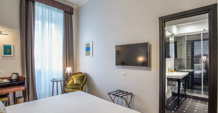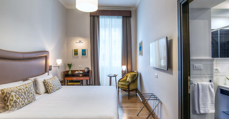 Internet connection ADSL WI-FI . Free access. Satellite LED TV Telephone Minibar Safety box. Individual control Heating and Air condition. Antiallergic mattresses and pillows. Feather pillows available on request. Cinelli Feather Duvets Slippers Nuxe Toiletries Professional hairdryer The, coffee and amenities in-room courtesy. Bose speaker system. Daily bath linen and bed linen change Services included in the daily rate:
