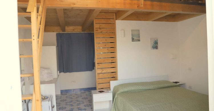 Comfortable and bright loft, non-smoking, accessible for disabled guests and located on the sea level surrounded by Mediterranean plants. There are 2 double beds: one on the ground floor and one on the mezzanine. The flooring is in refined Vietri ceramic and the furnishings are in Mediterranean style. The outdoor garden, reserved for the loft, is furnished with a table and two chairs. The restaurant and the private beach are just a few dozen meters from the loft.