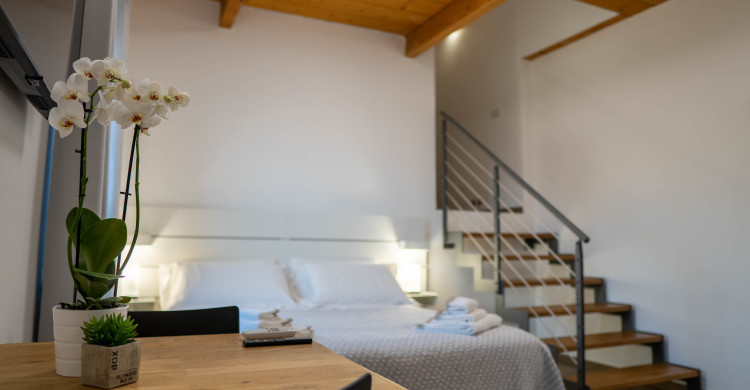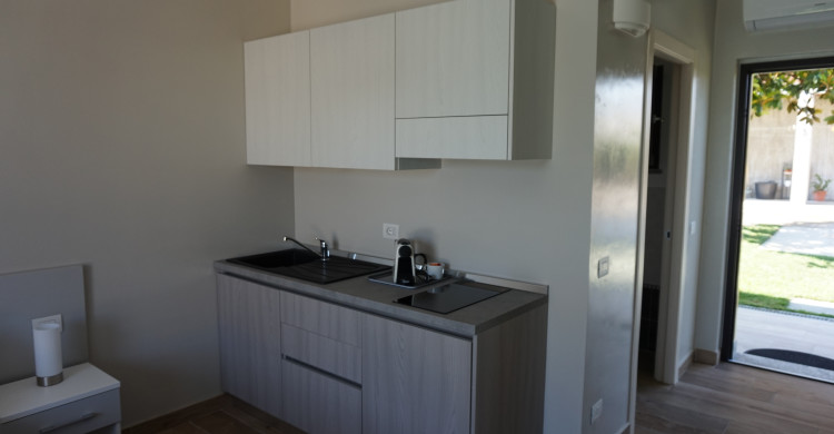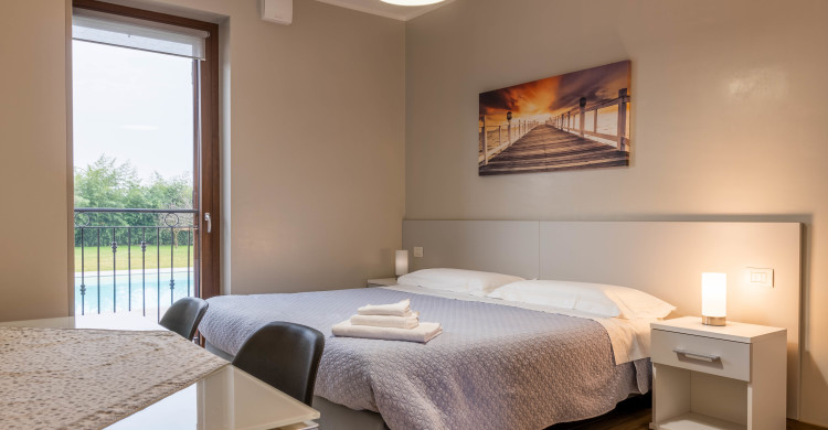 Our guests can choose between different solutions: - studio apartment facing the pool or in the main building - suite in the main building with one bedroom and a large living room - two-room apartment in the main building with two bedrooms and two bathrooms All apartments have an independent entrance, king size beds, equipped kitchenette, smart TV, Wi-Fi, independent air conditioning and heating, bathroom with all accessories, supply of bed linen and towels and weekly cleaning. Free private parking with video surveillance is available to all guests.