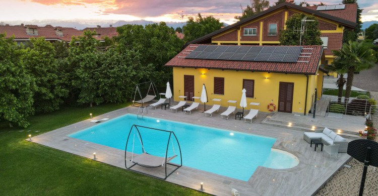 Residence Le Palme in Torrazza Piemonte, near Turin (Italy) offers the opportunity to stay in a quiet and relaxing environment. It is easily accessible from the A4 Turin-Milan motorway, Rondissone exit. It is located within a private property of over 3,000 square meters, equipped with a large planted garden, swimming pool with hydromassage and various relaxation areas.