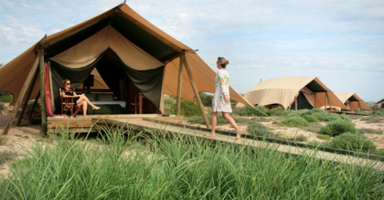 Experience the reef lush with wildlife and the outback spanning for miles with the Cape Range to provide you with the natural environment of Australia. Wake to the song of a butcher bird, the raucous squawks of a galah or the thump of a wallaroo passing by. At night fall asleep to the sound of the waves on the beach, exhausted by a full day of activity, fine food and camaraderie. At Sal Salis you will discover the magic of true eco-luxe camping.