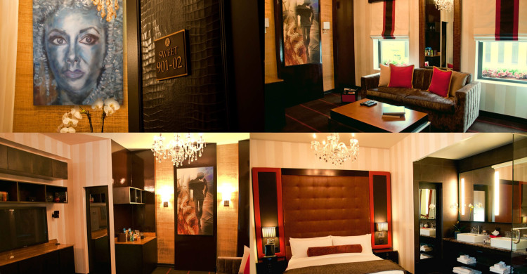 One Bedroom Suite with King Size Bed, separate living room with pull out Queen Size Sofa Bed, small kitchenette with microwave and coffee machine, Bose surround system with docking station, eco-friendly touch screen lighting & climate control system, Two HDTV's, His & Hers California closets, 1 1/2 baths, His & Hers Sinks in Master Bath. Complimentary Continental Breakfast, WIFI, and gym pass to Equinox Fitness Center nearby with spa services.