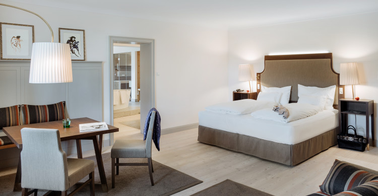 This 105 m² suite with integrated spa area offers a truly unique spa experience. A sauna with infrared function, snug, heated loungers and free-standing bathtub with views of the wonderful mountain scenery are only a few highlights of this luxurious suite – ideal for a romantic break for two.