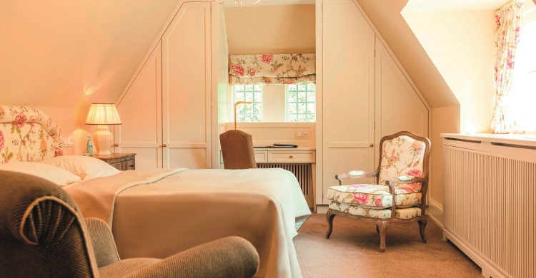 The Grand Suite newly conceived in 2013 as Maisonette spans over two floors and offers separate living, sleeping and eating quarters as well as a kitchenette. The color composition of Sand and Olive from the collection “Paint and Paper Library” and “Farrow and Ball” (Nina Campbell) lends the suite a particularly harmonious note. The exceptionally large bathroom with natural light, bathtub, and a spacious shower as well as the separate guest WC, guarantee the comfort of a luxury apartment that is expandable to 130 m2 by way of two additional connecting rooms. And of course, the living and sleeping rooms provide the highest standard in modern technology offering a flat screen television and free Wi-Fi as well as USB docking stations.