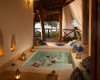 These 70 m² bandas stretch across the pool, offering invigorating views from their private patios. They are all fitted with king-size beds with comfy mattresses and premium bedding, plus a sofa bed in the seating area to accommodate a third guest. Spacious and airy, the bungalows are decorated with artisan furnishings made by local craftsmen. They have ensuite bathrooms with twin sinks and shower, all with luxe body and haircare products on the house. There’s air conditioning to beat the heat, and a whole suite of modern amenities to make your island escape as stress-free and comfortable as you’ve imagined it