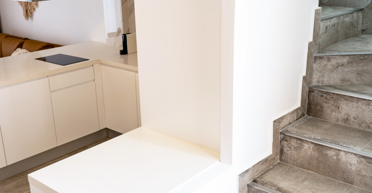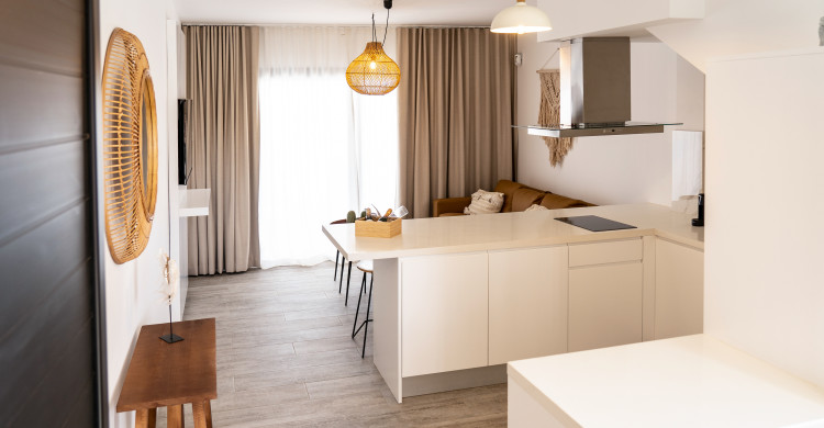 1 bedroom apartment, lower floor with livingroom, kitchen and terrace, higher floor with bedroom, bathroom and another rooftopterrace with stunning seaviews