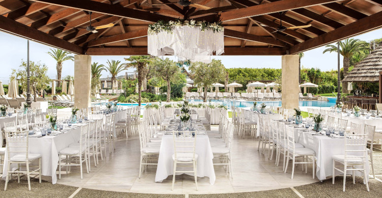 Sheraton Rhodes Resort offers flexible indoor and outdoor event spaces for up to 850 people to toast, cheer, and share your special wedding day. The beautiful area around the pool serves as the signature feature of our hotel and provides an outstanding atmosphere for your special day.