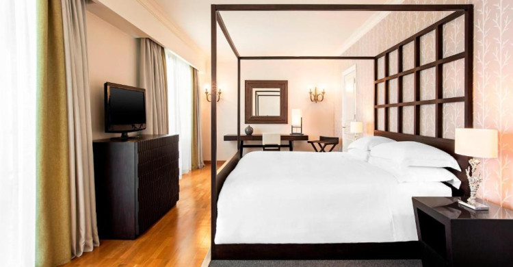 Room Overview Aelia Suite with Sea View Beds and Bedding Maximum occupancy: 5 Bedroom 1: 1 King Bedroom 2: 1 King Rollaway beds permitted: 1 Cribs permitted: 1 Maximum cribs/rollaway beds permitted: 2 Duvet Room Features 120sqm/1291sqft Air-conditioned This room is non-smoking Connecting rooms are available Outdoor spaces: veranda (1) Living/sitting area Dining area Separate living room Living area and bed separated privacy wall Library Study Windows, soundproof USB outlets Bath and Bathroom Features Bathrooms: 2 Marble bathroom Shower Bidet Hair dryer Robes: 2 Slippers Furniture and Furnishings Chair Alarm clock Safe, in room Table, seats 2 Desk, writing/work Food & Beverages Room service, 24-hour Grocery shopping service Bottled water, complimentary Coffee/tea maker Instant hot water Minibar, for a fee Kitchen Features Mini fridge Internet and Phones Phones: 3 Phone features: voicemail, and speaker phone Wireless internet, complimentary Hospitality Services Evening turndown service Entertainment Cable/satellite International cable/satellite CNN Radio Accessible Room Features This room type does not offer mobility accessible rooms This room type does not offer accessible rooms with roll-in showers This room type does not offer hearing accessible rooms