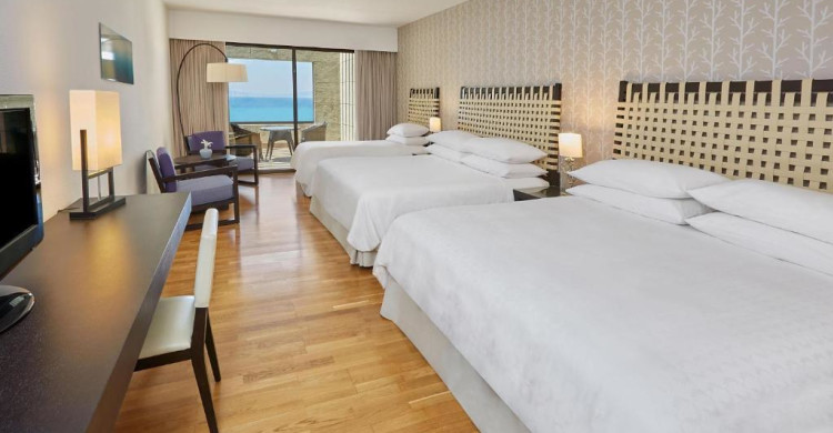 Family Room with Sea View with 1 King and 2 Twin Beds Beds and Bedding Maximum occupancy: 4 1 King Rollaway beds not permitted Cribs permitted: 1 Maximum cribs/rollaway beds permitted: 1 Duvet Room Features 40sqm/430sqft Air-conditioned This room is non-smoking Connecting rooms are not available Outdoor spaces: balcony (1) Living/sitting area Study Windows may be opened Windows, soundproof USB outlets Bath and Bathroom Features Marble bathroom Shower Bidet Hair dryer Furniture and Furnishings Chair Alarm clock Safe, in room Table, seats 2 Desk, writing/work Food & Beverages Room service, 24-hour Grocery shopping service Bottled water, complimentary Coffee/tea maker Instant hot water Minibar, for a fee Kitchen Features Mini fridge Internet and Phones Phones: 2 Phone features: voicemail, and speaker phone Wireless internet, complimentary Entertainment Cable/satellite International cable/satellite CNN Radio Accessible Room Features This room type does not offer mobility accessible rooms This room type does not offer accessible rooms with roll-in showers This room type does not offer hearing accessible rooms