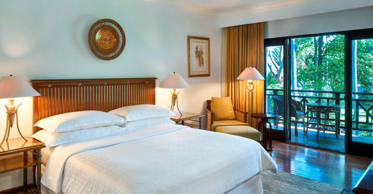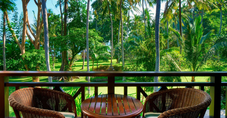 A beautiful spacious room with a tropical feel and garden-facing balcony. Our rate includes breakfast.