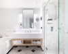 Luxurious bathrobe Flexible and fixed showerheads High-quality bathroom products Hair dryer Towel rack Make-up/magnifying mirror Bathroom telephone Full-length mirror