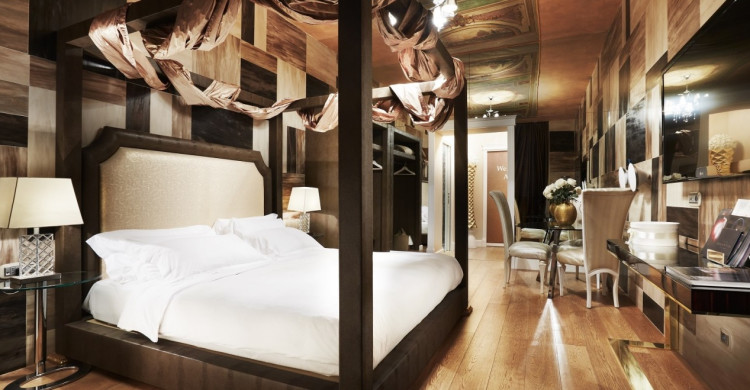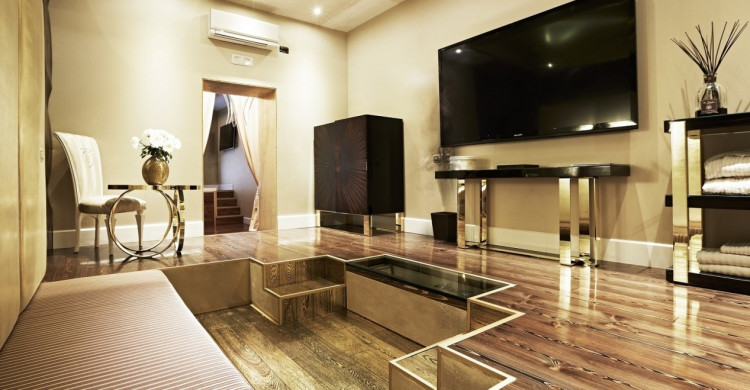 The Golden Suite epitomizes luxury, combining elegant furnishings and indulgent features. Guests can dip into the extra-large whirlpool bath and celebrate a romantic occasion with a bottle of wine or champagne from the mini bar. The private bathroom features a chromotherapy rainfall shower, big enough for two too.