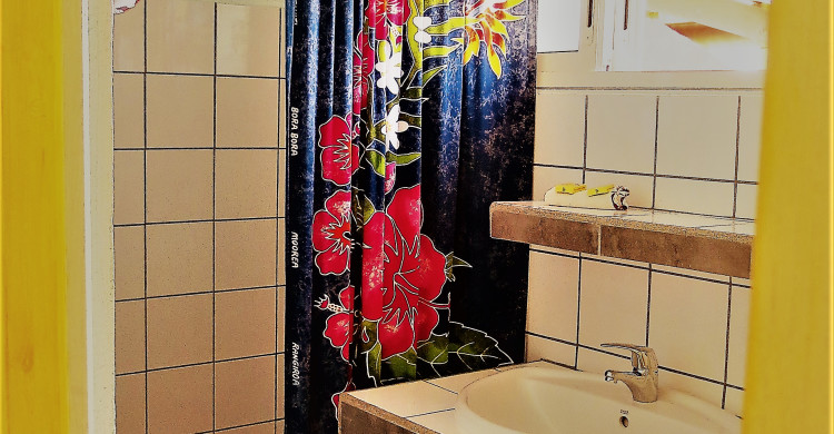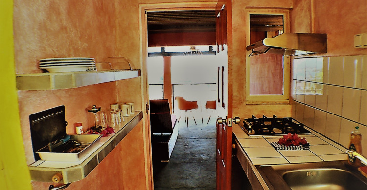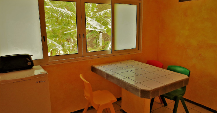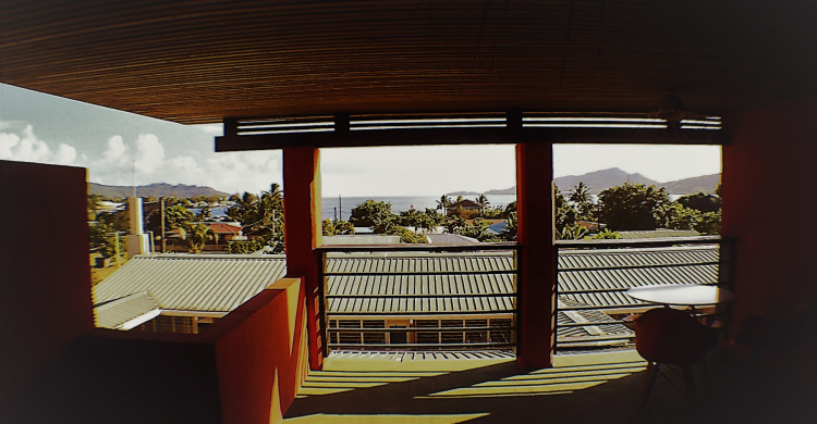 A cosy and comfortable studio, a well equipped kitchen, a bathroom with shower and toilet. A nice terrace with deck chairs with mattresses and dining table. All air-conditioned and superb views of the lagoon and the mountain.